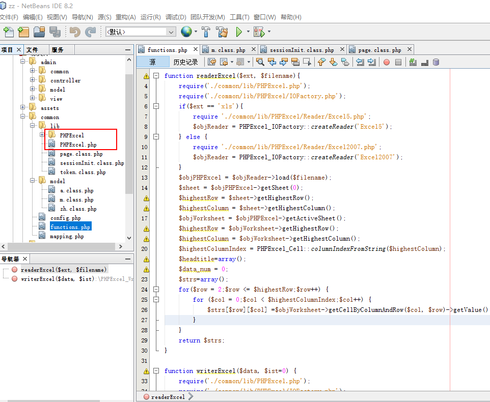 没办法在controller 直接调用PHPExcel 。还好我们有functions.php 自定义全局方法。用function 引用PHPExcel类 进行Excel的读写