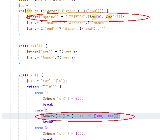 $where['w'] = ['BETWEEN',[300, 1000]];