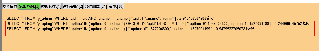 SELECT * FROM `y_upimg` WHERE `w` IN (:w_0,:w_1) [ ":w_0":300,":w_1":1000 ] : 0.5488395690918毫秒